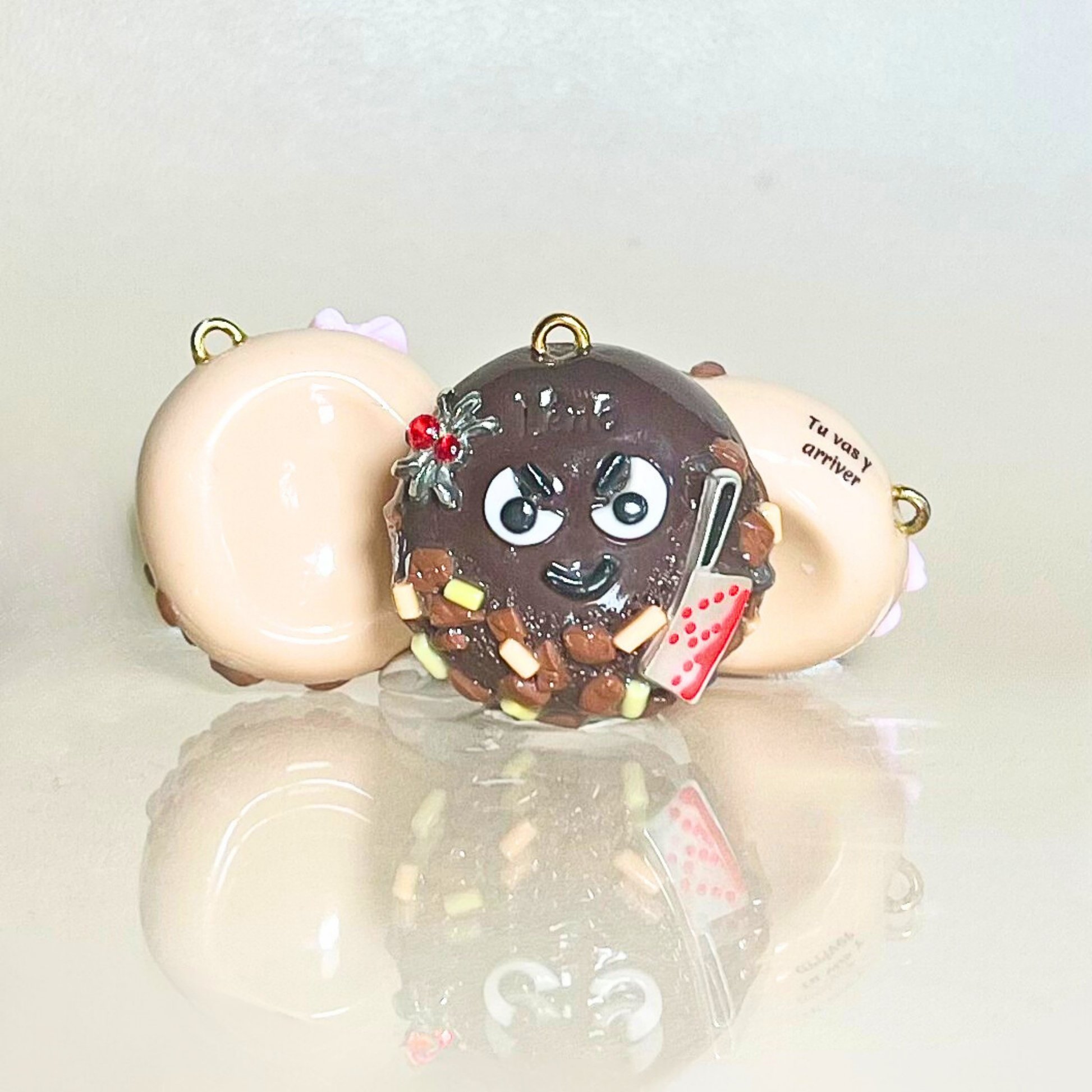 Chocospooky s'est déguisé pour Halloween et a présenté ses plus beaux éclats de chocolat noir avec des pépites orange et jaune. Il s'est muni de son plus beau couteau ensanglanté et de sa fidèle copine, l'araignée. Petit cookie tout chocolat avec un visage narquois et un sourire malicieux , il adore effrayer tout en restant mignon et amusant . Son effrayant fait sourire tout en donnant un petit frisson rigide .