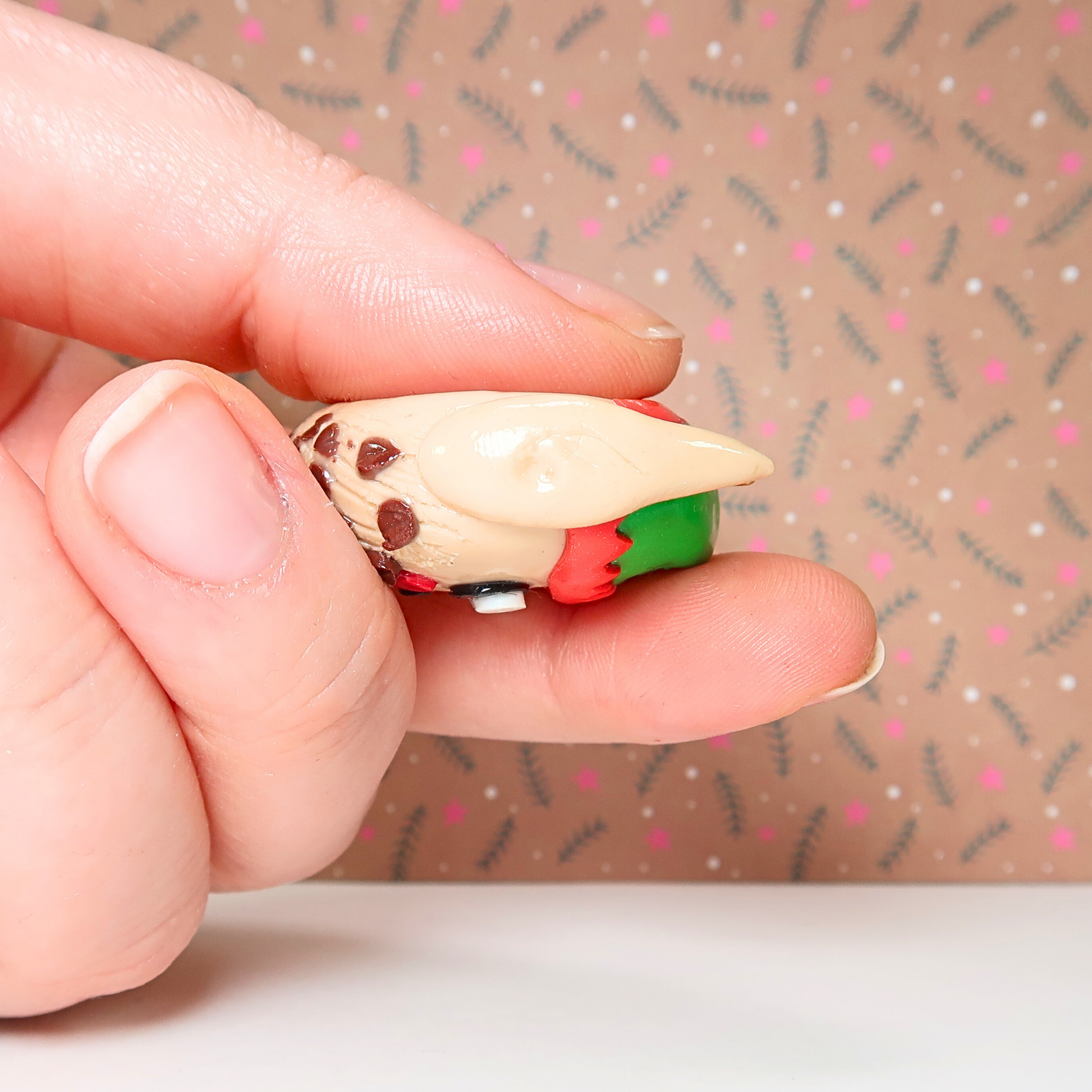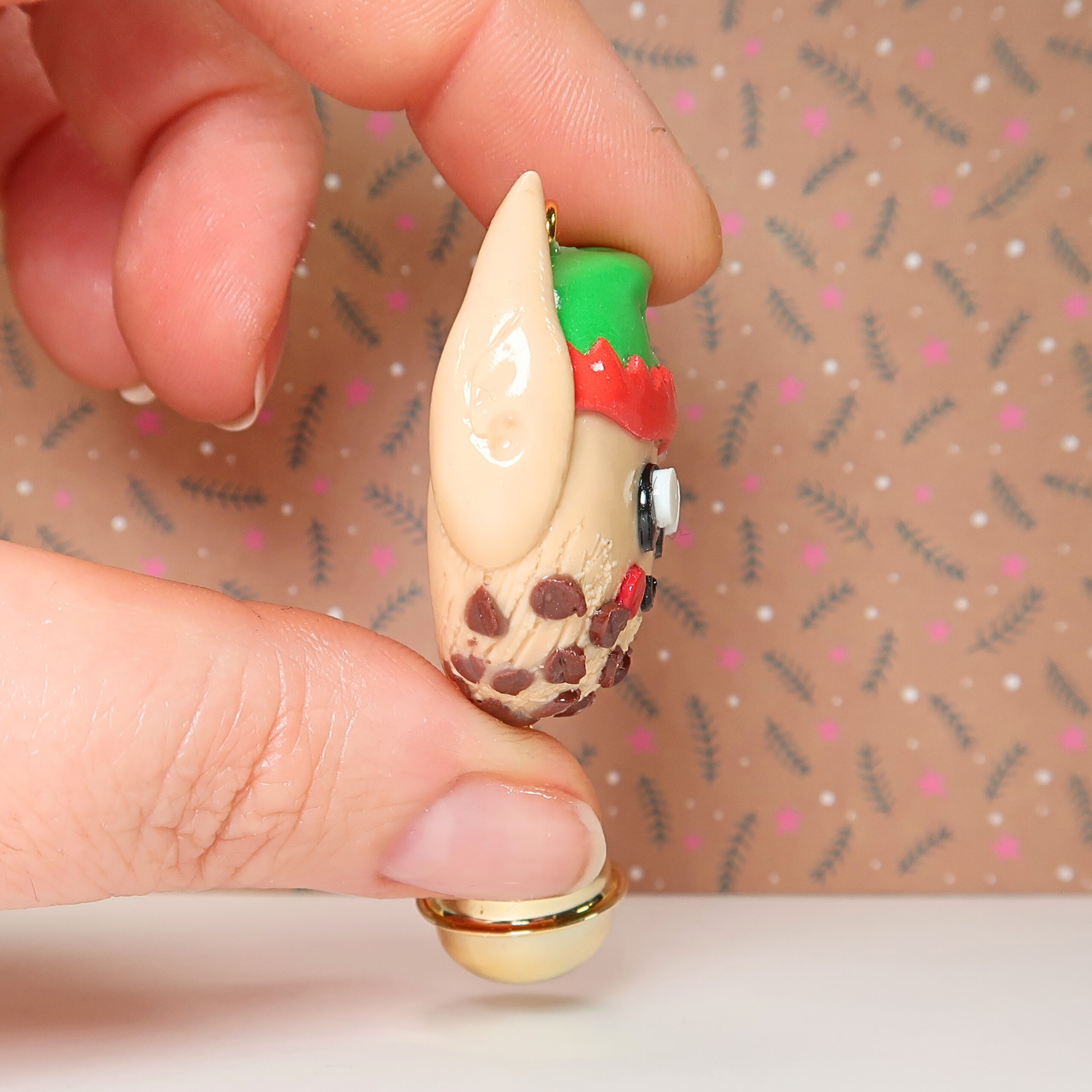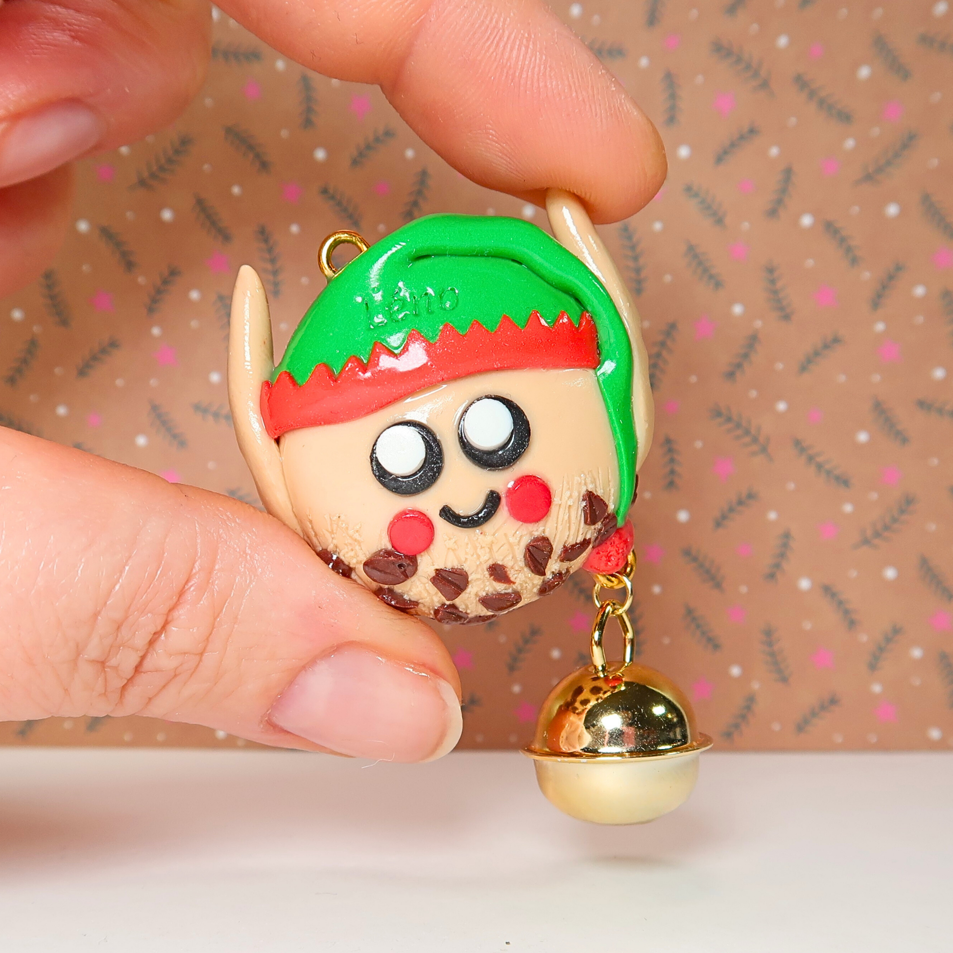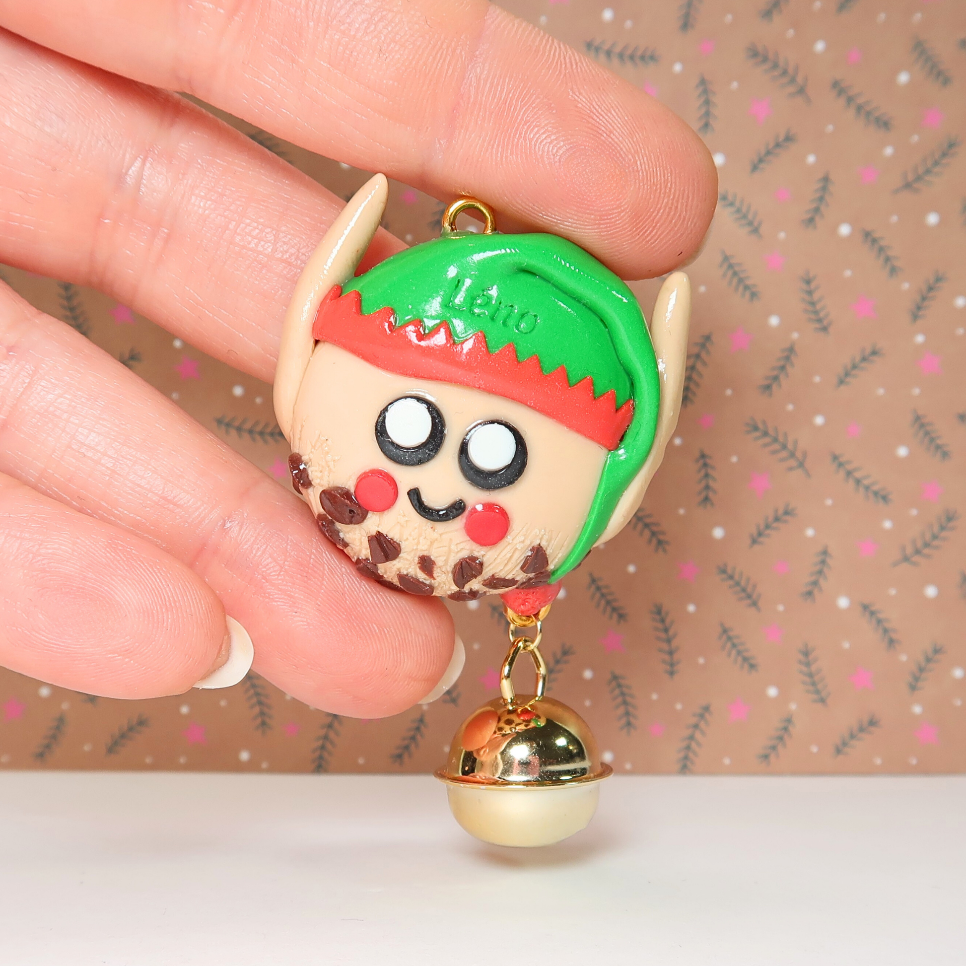 Avec son bonnet vert et rouge, ses oreilles pointues et sa mini clochette qui tinte tout doucement, il t’offre un apaisement immédiat — comme un petit rappel de respirer et de relâcher la pression.